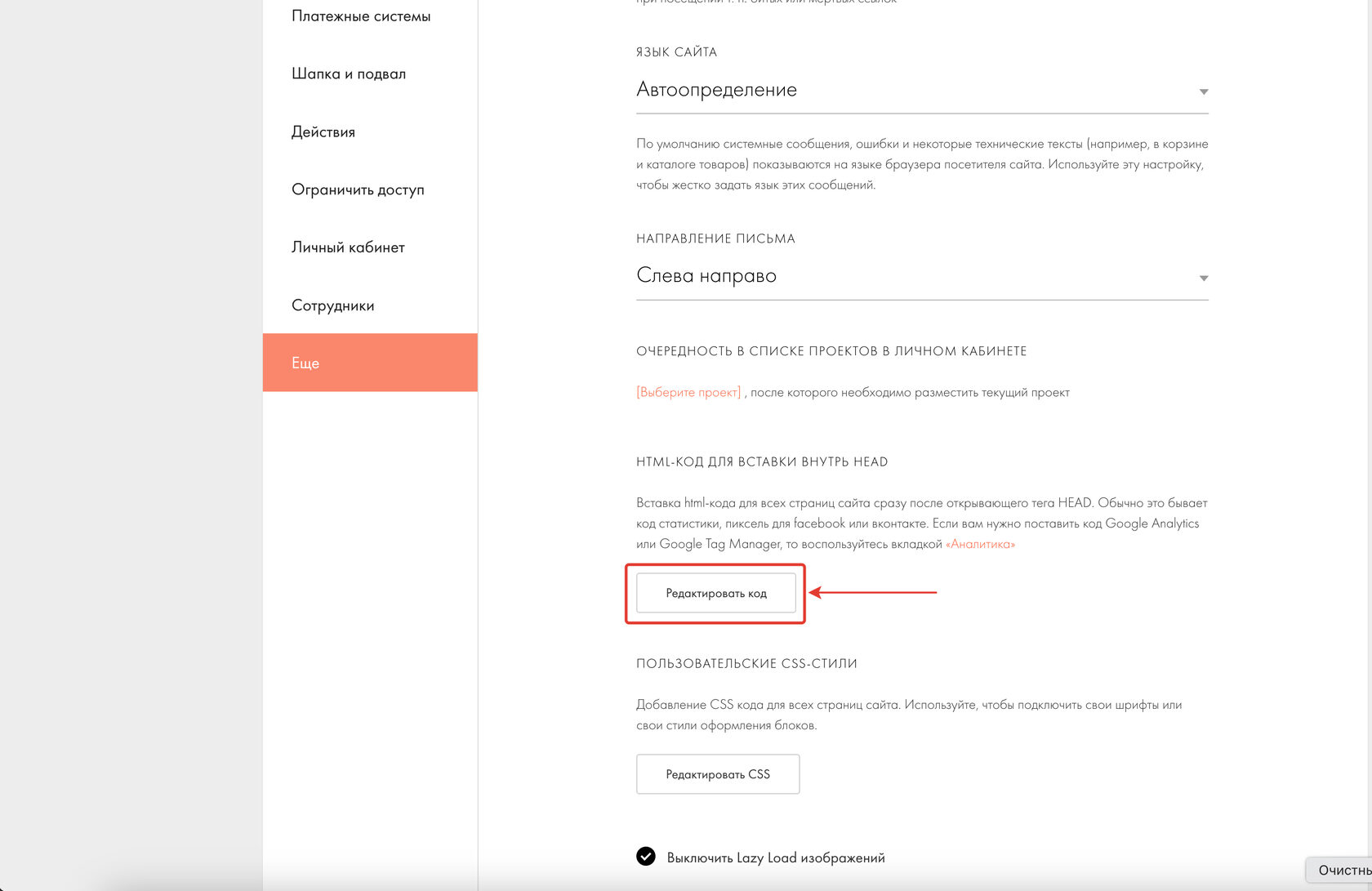 Добавить в HEAD код